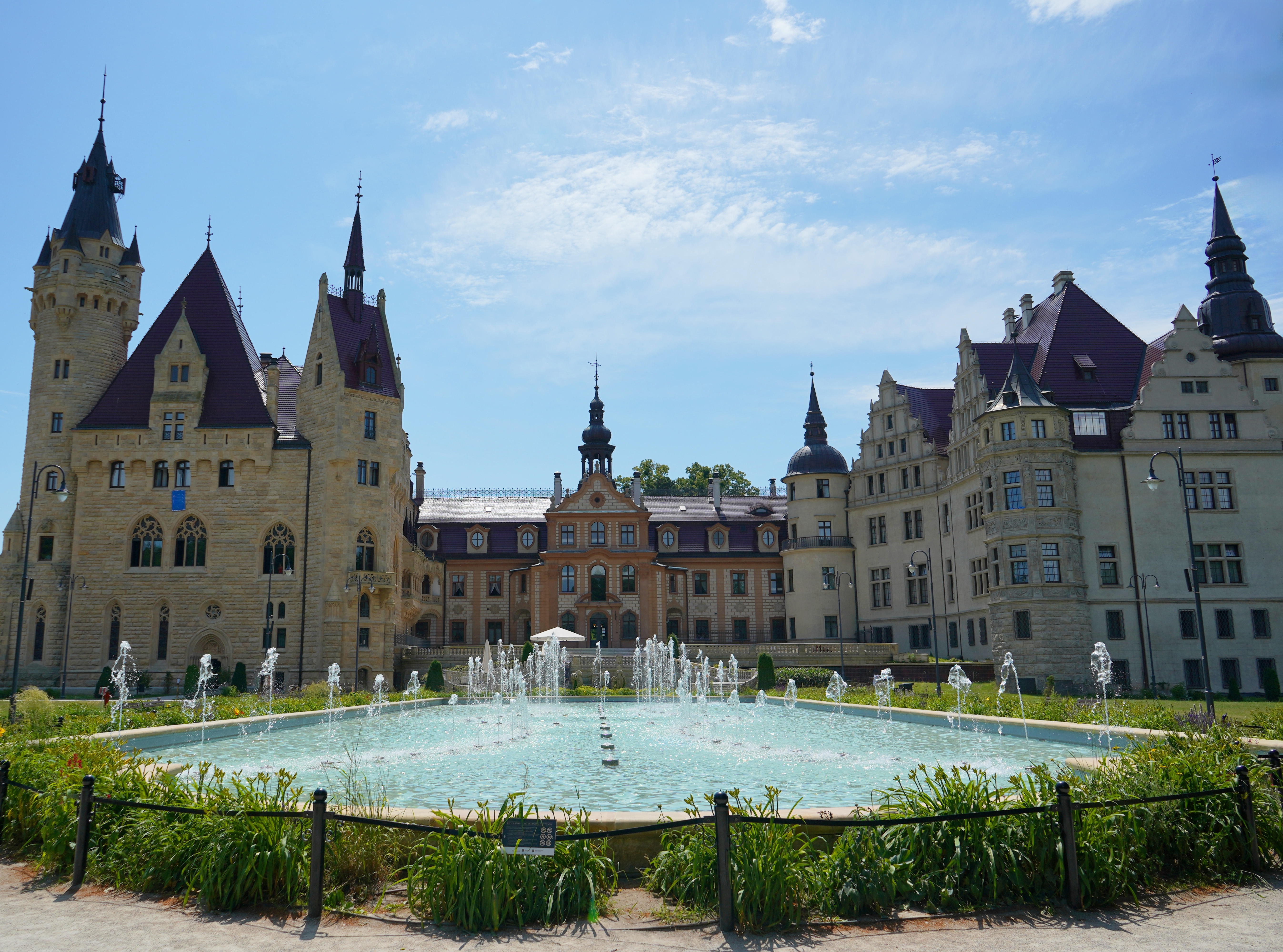 Widok z Przodu na Zamek Moszna z fontanną, fot. Shutterstock